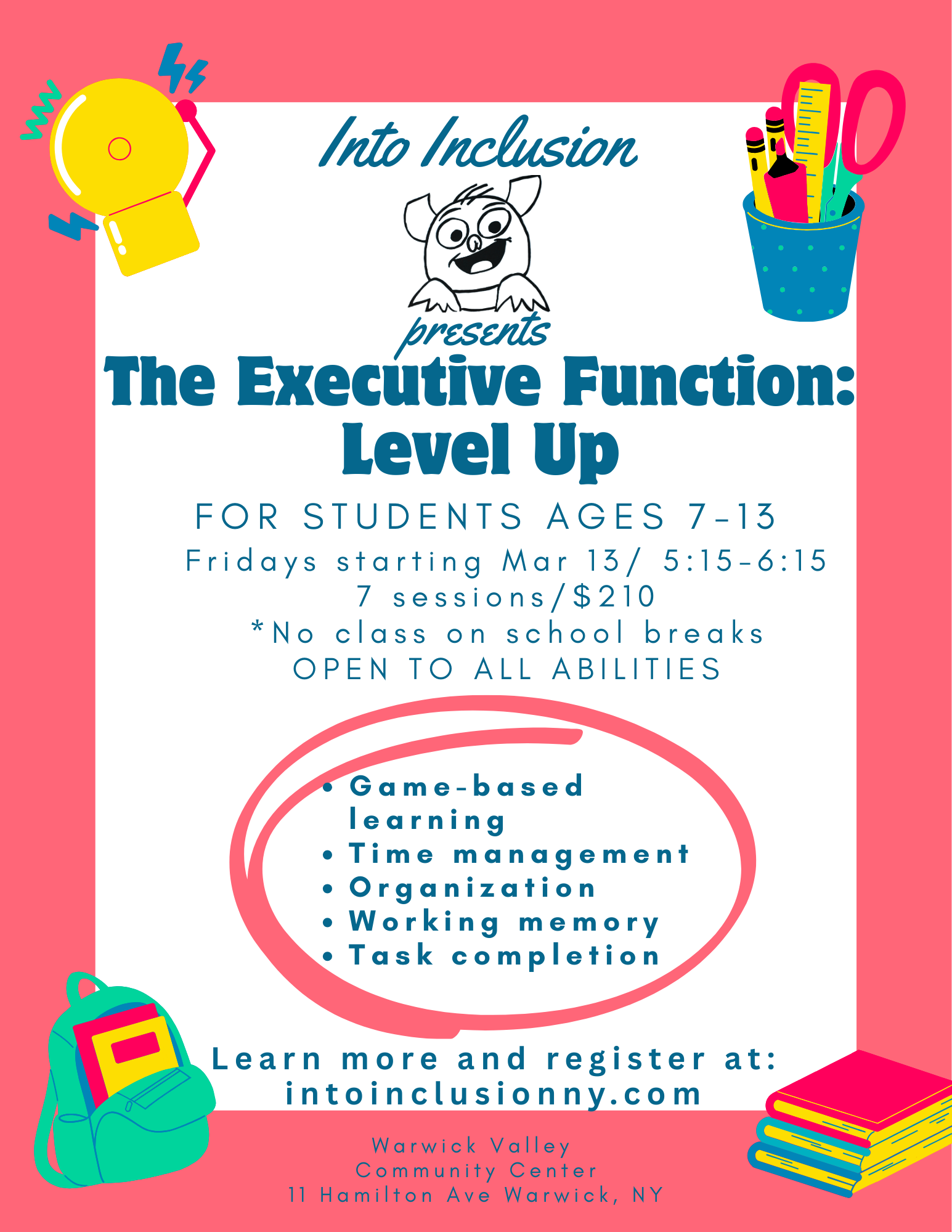 Does your child struggle to prioritize tasks, follow schedules, and complete schoolwork? Our multi-faceted executive functioning class will focus on practical goals through game-based learning. Students will develop their ability to problem solve, fulfill responsibilities at home and school, and develop self-advocacy skills to use across environments.